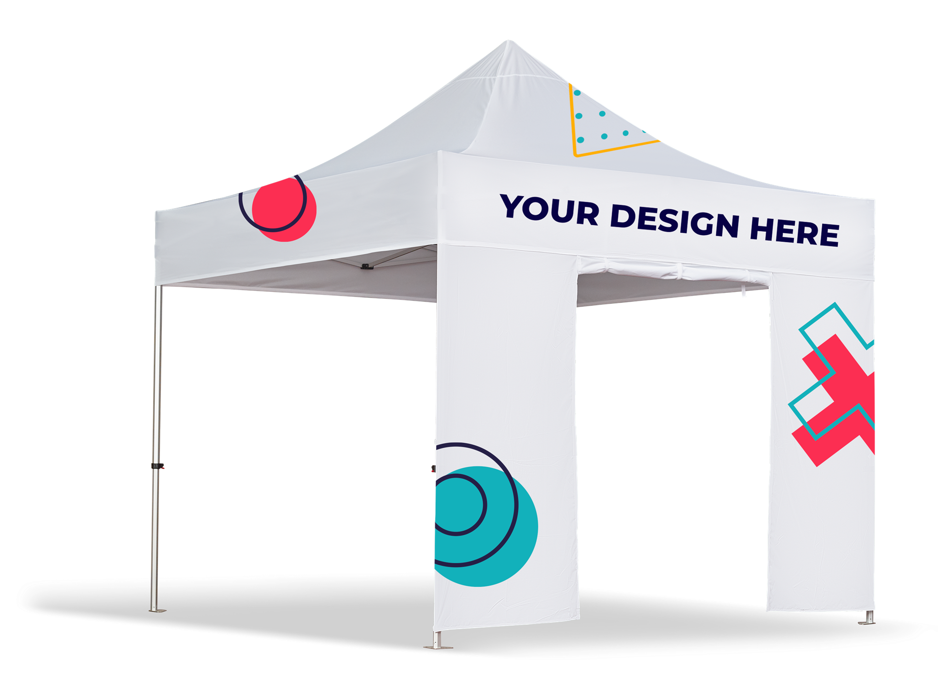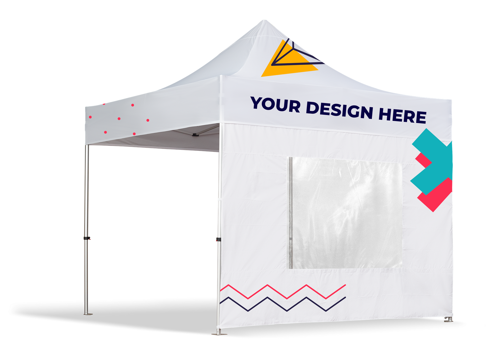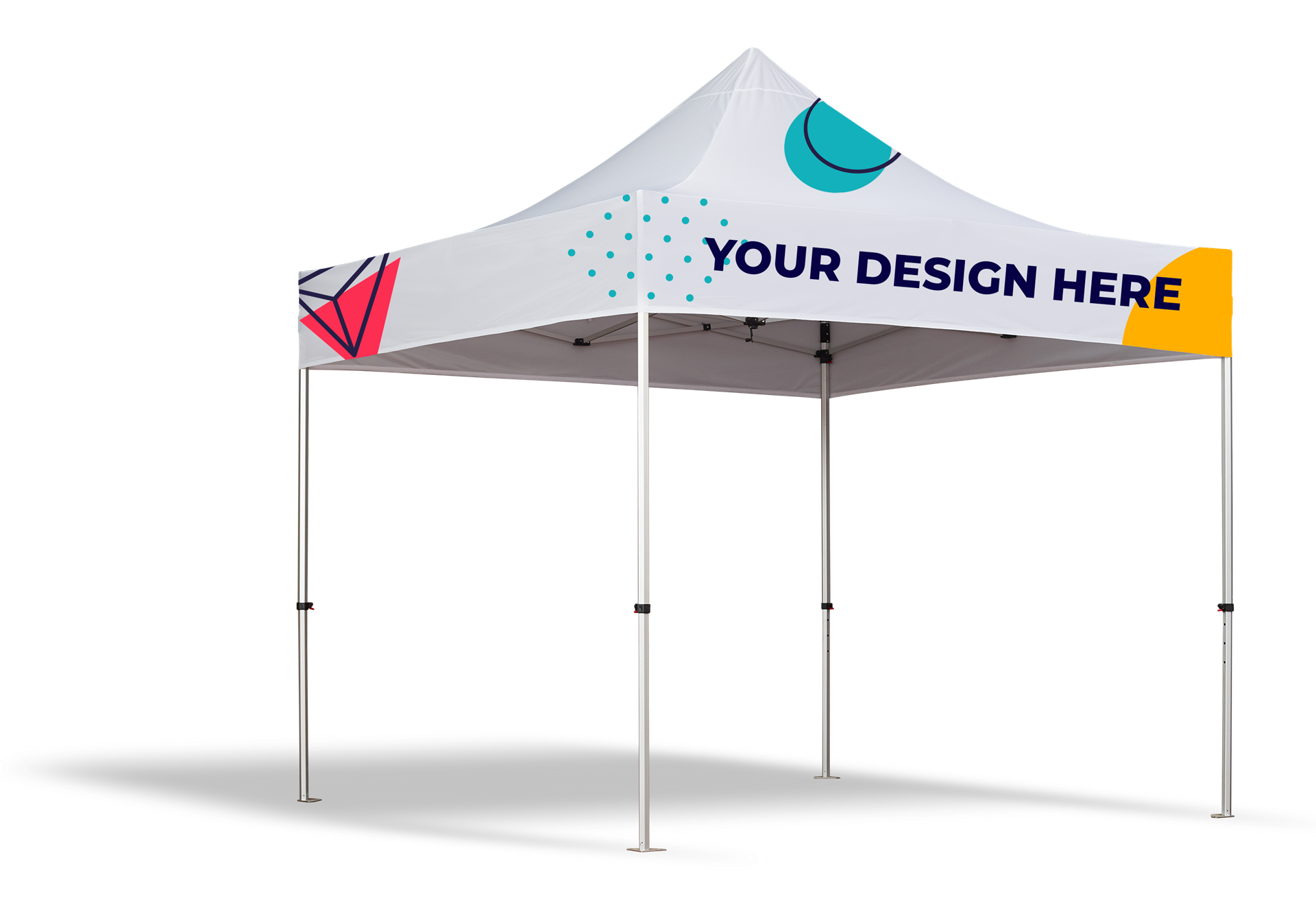 Faltbares Mehrzweckzelt. Anpassbarer Stoff mit Vollfarbdruck und Aluminiumstruktur.