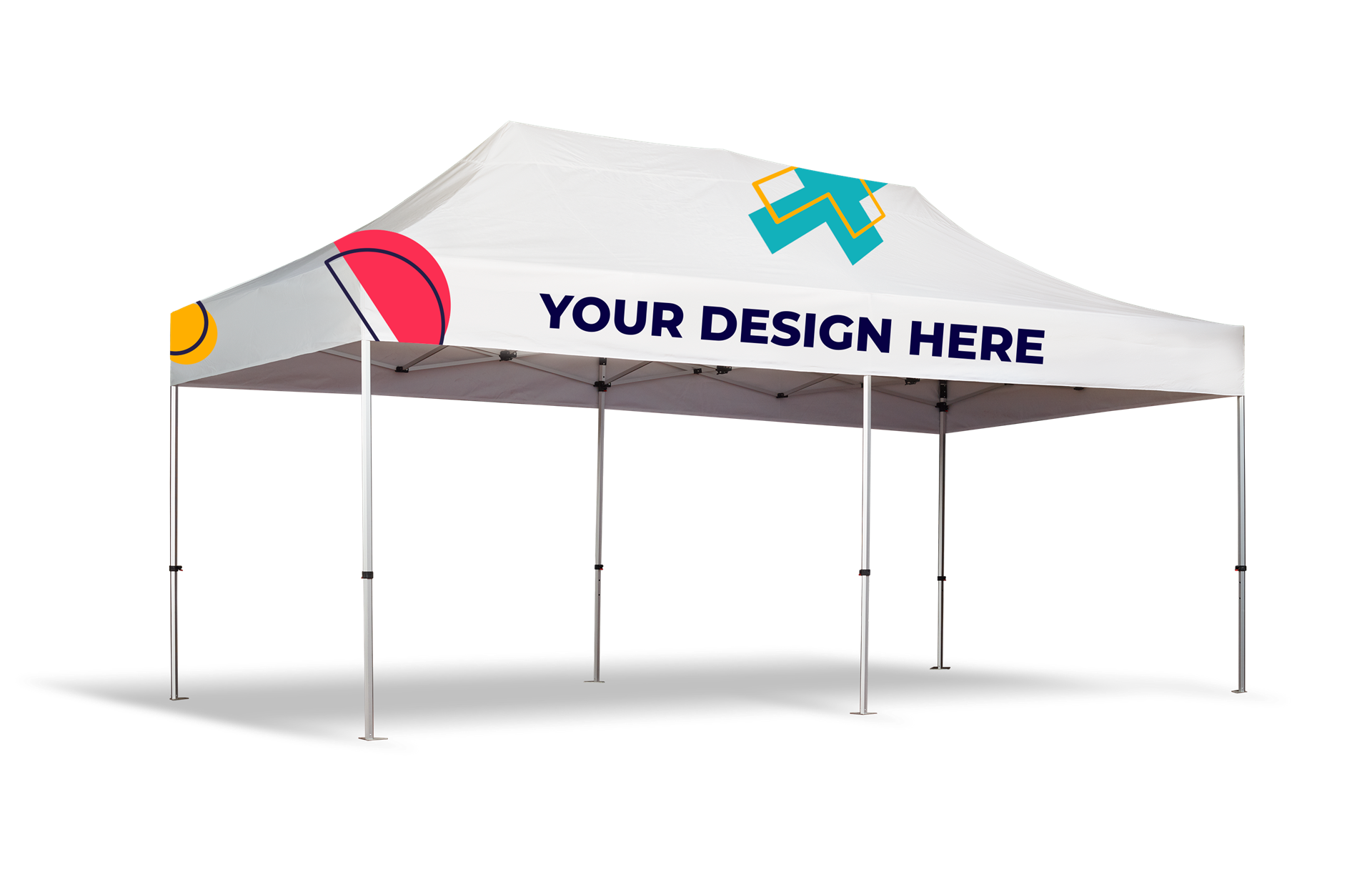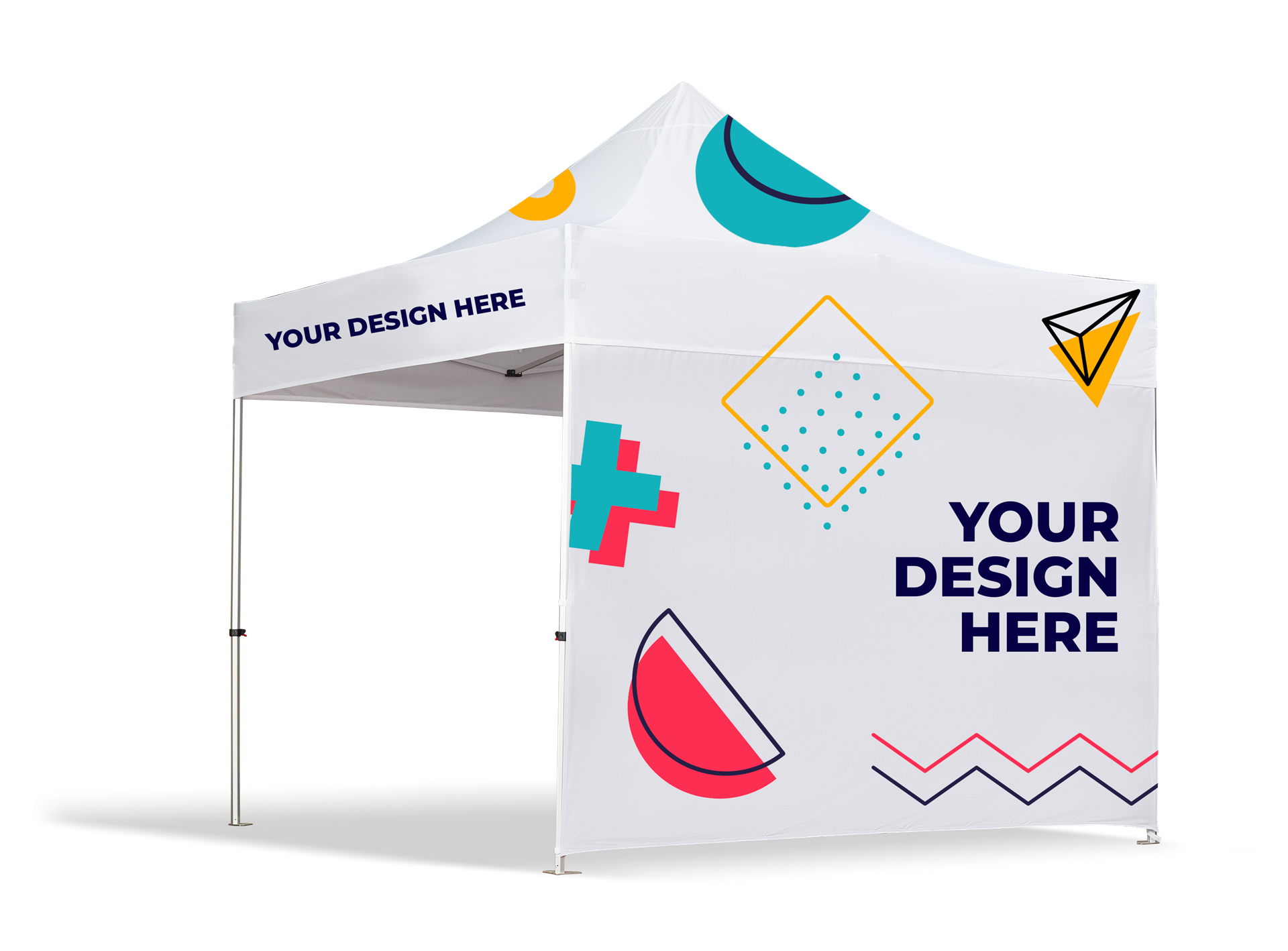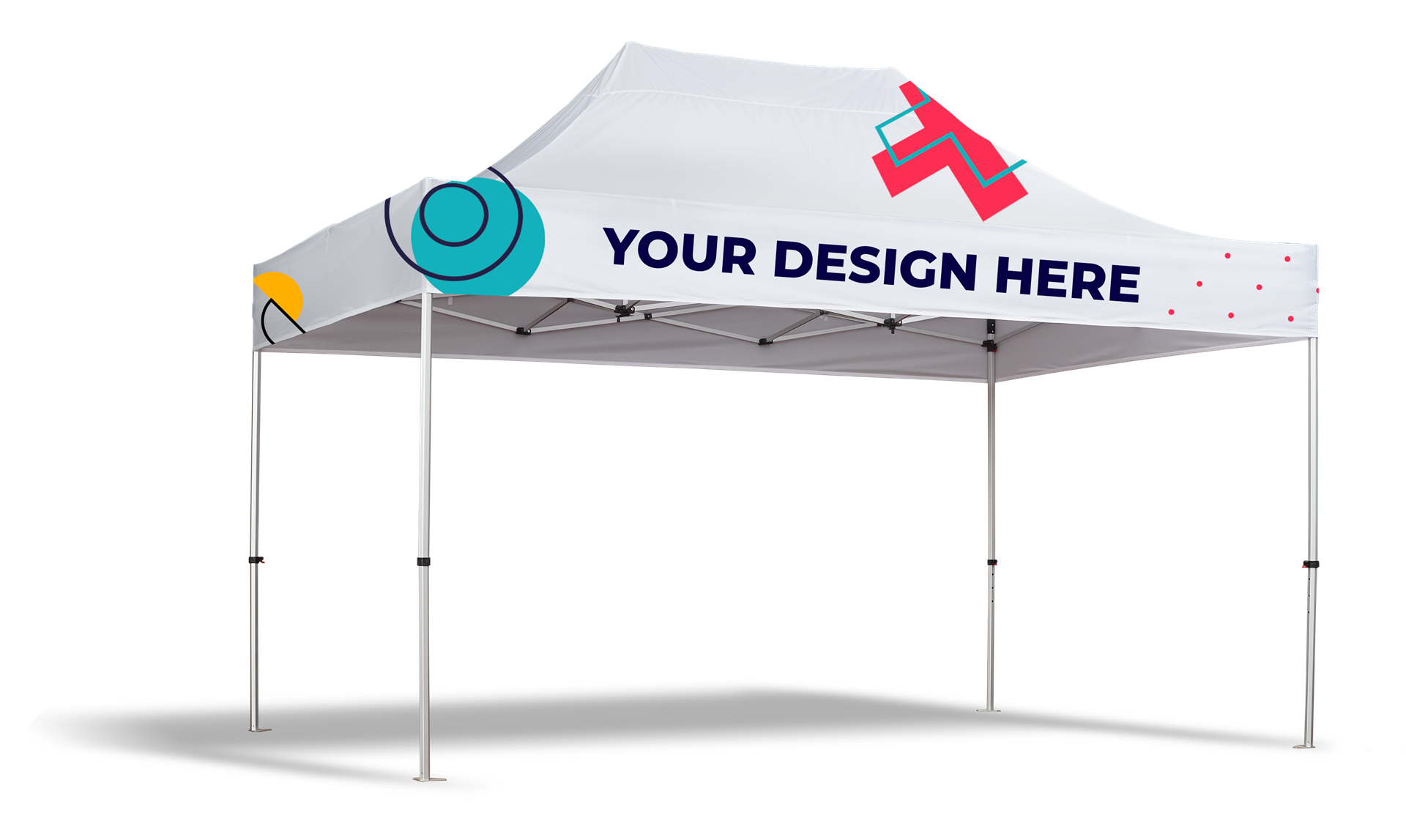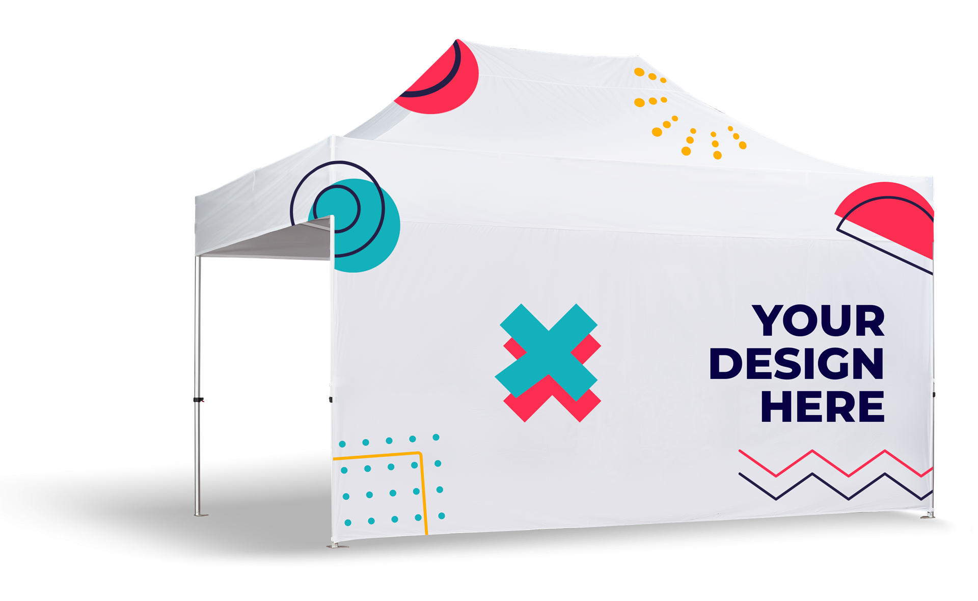 Faltbares Mehrzweckzelt. Anpassbarer Stoff mit Vollfarbdruck und Aluminiumstruktur.