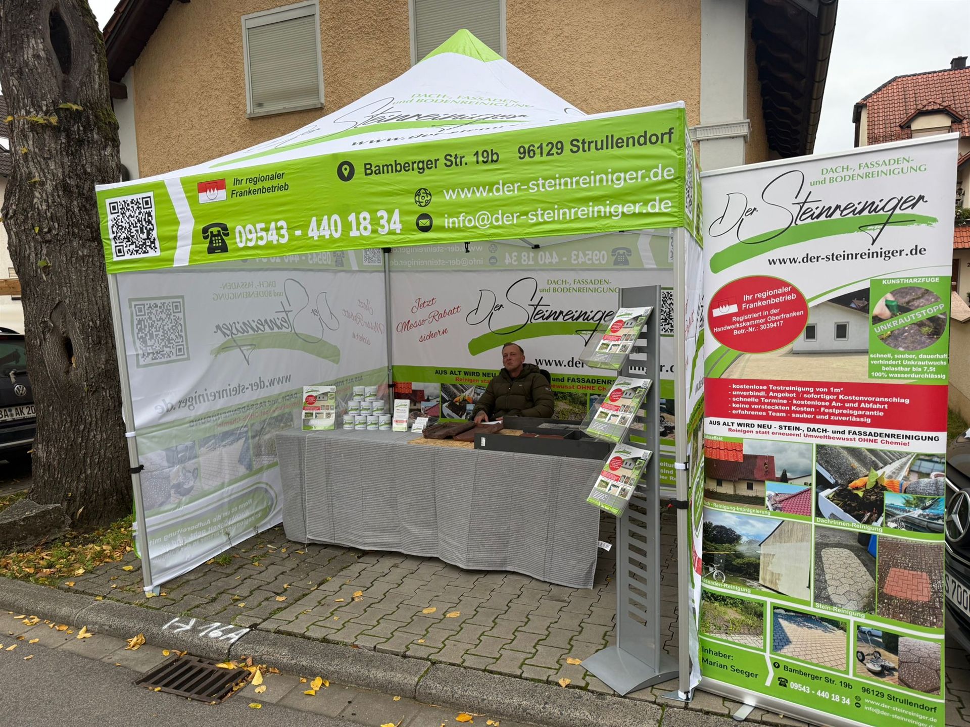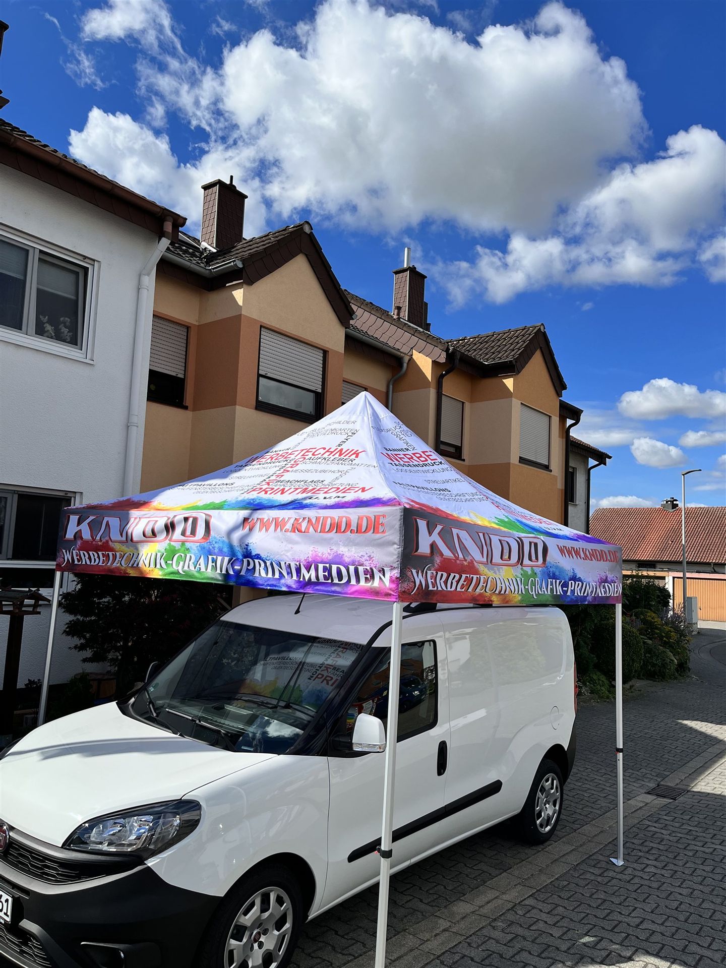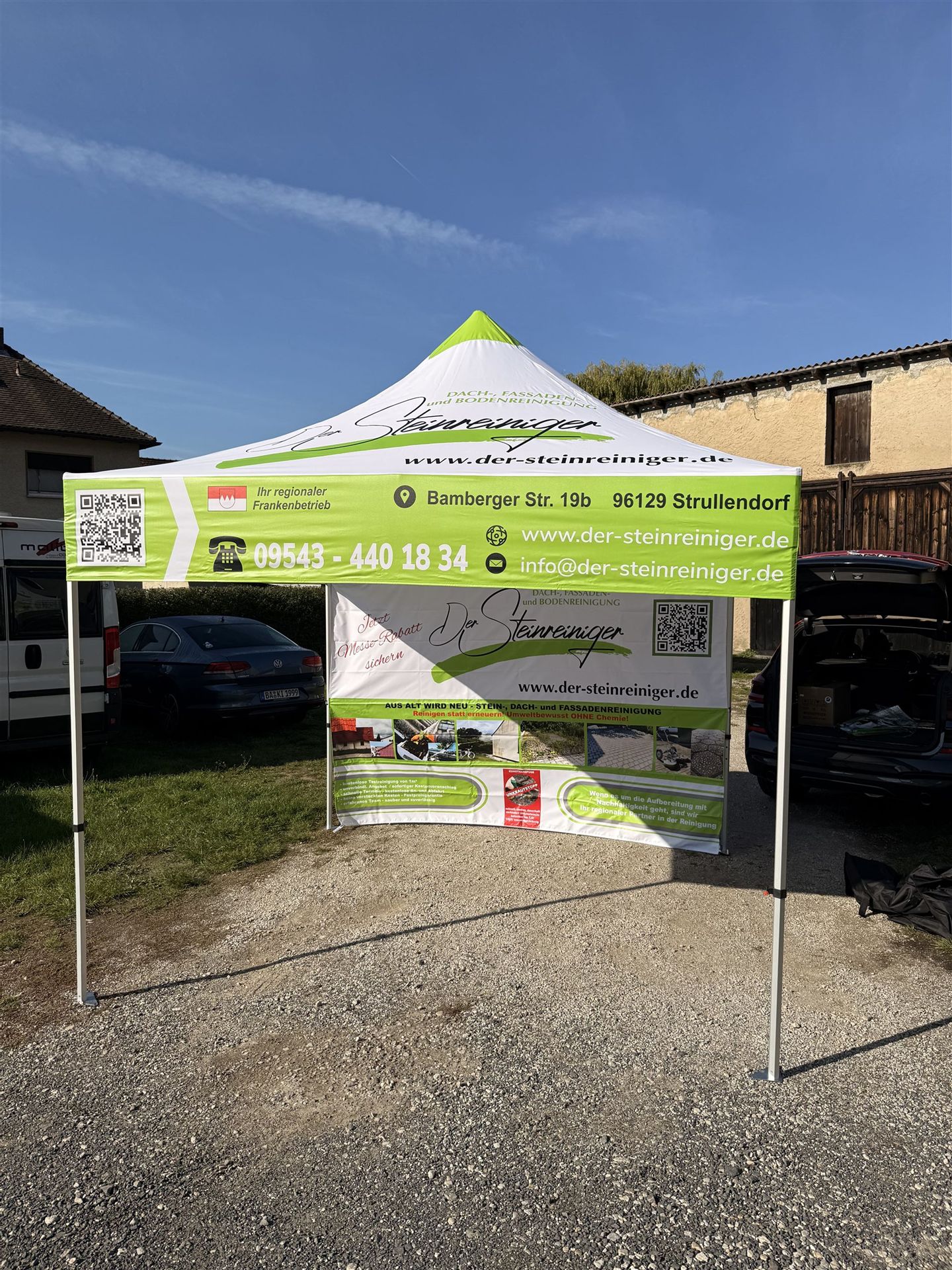 Einfacher Aufbau und Transport. Druck auf 180g/m² wasserdichtem Zeltdach (UV-Druck).