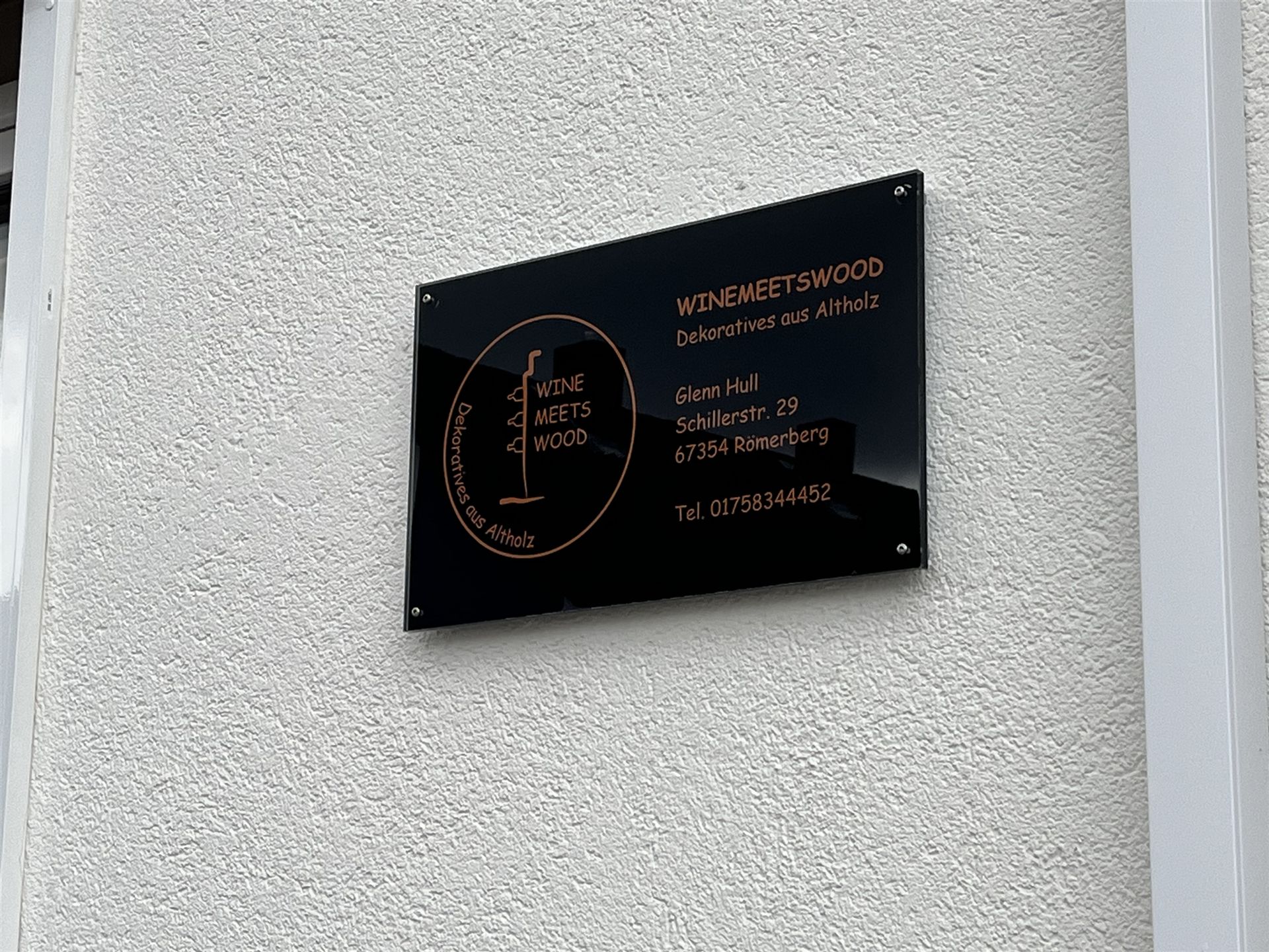 Ein Firmenschild begrüßt Ihren Besucher gleich mit den richtigen Informationen.